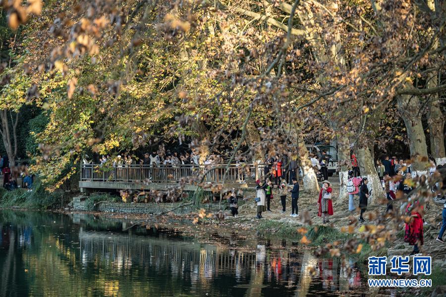10月25日,游客在贵阳市花溪国家城市湿地公园黄金大道游玩。 深秋时分,贵州省贵阳市花溪国家城市湿地公园黄金大道秋意盎然,吸引众多游客前来观赏游玩。 新华社记者 陶亮 摄