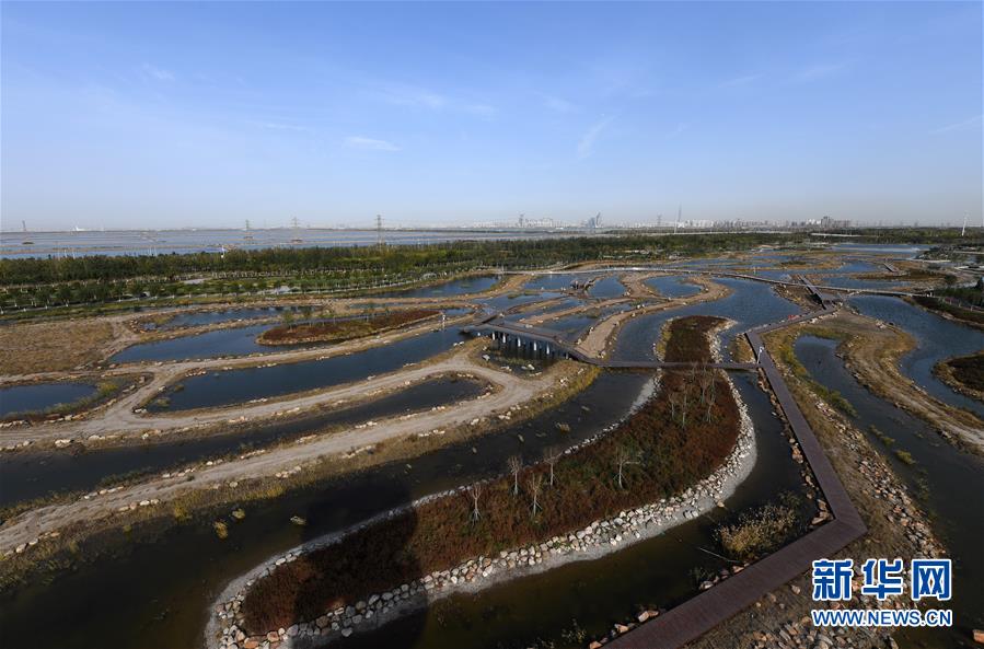 这是10月27日拍摄的天津港保税区临港生态湿地公园一景。 经过两年的建设,天津港保税区临港生态湿地公园二期项目日前顺利完工,对外开放。据了解,临港生态湿地公园位于天津港保税区临港区域西部,总面积约183万平方米,其中,二期总面积约120万平方米。这里原本是一片盐碱荒滩,经过改造和建设,本地块的湿地生态功能得到了有效修复,为鸟类提供了适宜的栖息环境,也进一步完善了天津临港区域的生态环境。 新华社发(赵子硕 摄)