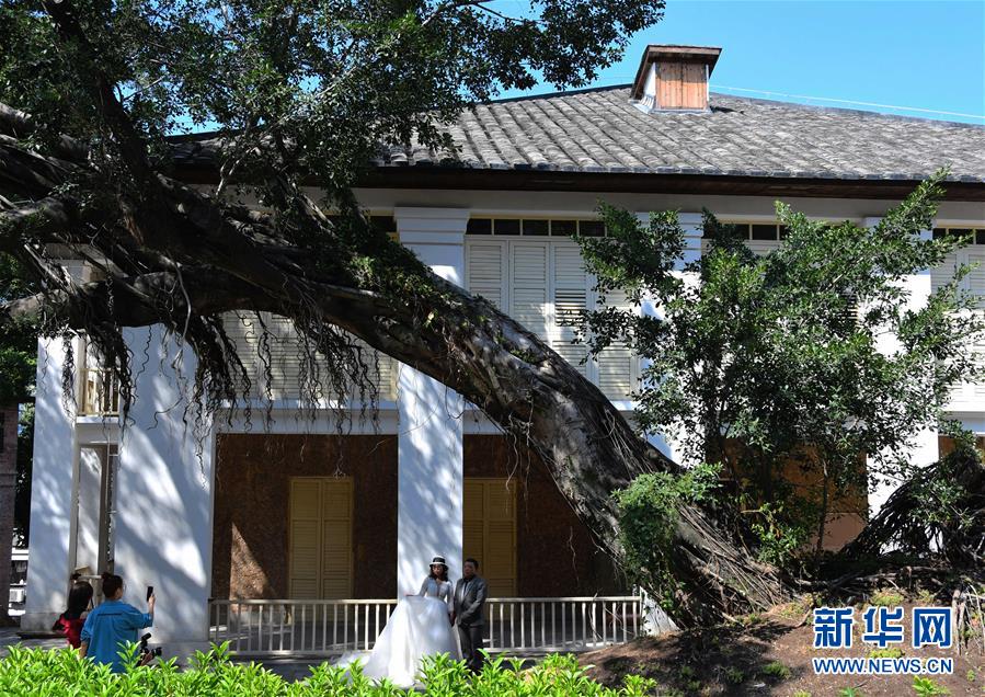 在福州烟台山历史风貌区的建筑前,一对新人在拍摄婚纱照(10月28日摄)。 秋日时节,福州各大公园、古街和历史风貌区在明媚阳光下让人流连忘返。 新华社记者 魏培全 摄
