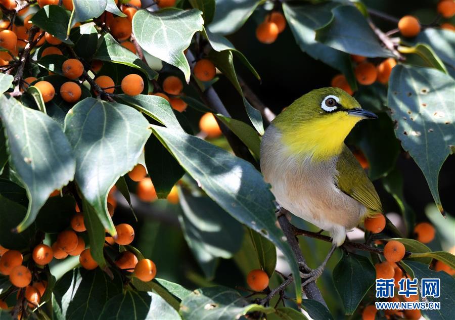 这是在福州烟台山历史风貌区拍摄的一只暗绿绣眼鸟(10月28日摄)。 秋日时节,福州各大公园、古街和历史风貌区在明媚阳光下让人流连忘返。 新华社记者 魏培全 摄
