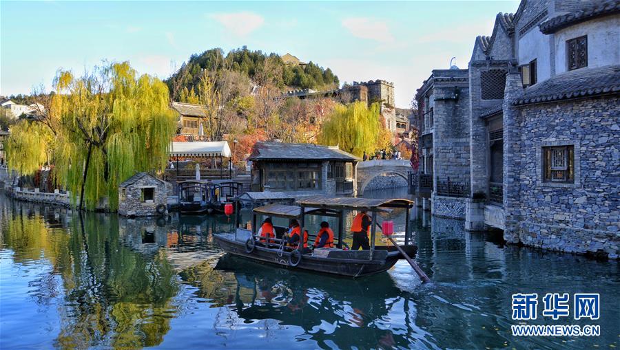 游人在古北水镇乘船观赏秋色(10月28日摄)。 秋意渐浓,北京市密云区司马台镇的古北水镇迎来大批游客。 新华社记者 李欣 摄