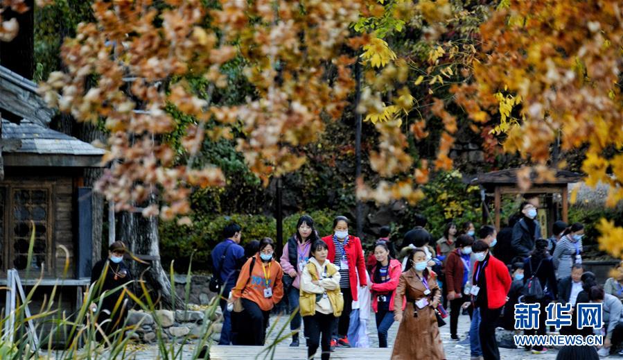 游人在古北水镇观赏秋色(10月28日摄)。 秋意渐浓,北京市密云区司马台镇的古北水镇迎来大批游客。 新华社记者 李欣 摄