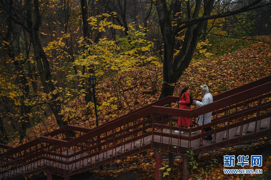10月29日,人们在俄罗斯莫斯科的科罗缅斯克庄园漫步。 科罗缅斯克庄园位于俄罗斯首都莫斯科东南,占地390公顷。作为莫斯科著名的文化古迹,科罗缅斯克庄园每天吸引众多游客前来游览。 新华社发(叶甫盖尼·西尼岑摄)
