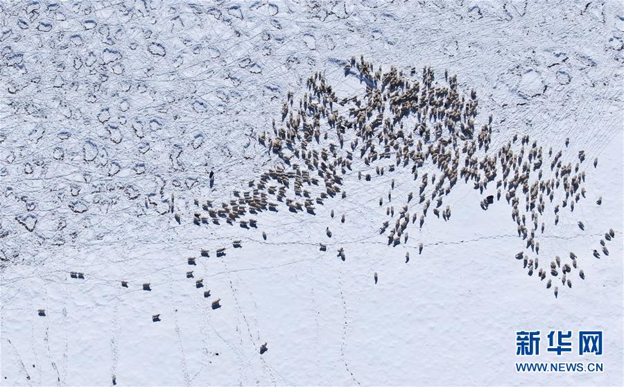 这是10月29日在青海省玉树藏族自治州称多县境内的嘉塘草原上拍摄的羊群(无人机照片)。 近日,位于青海省玉树藏族自治州称多县的嘉塘草原迎来降雪,雪后的嘉塘草原银装素裹,景色壮美。 新华社记者 张龙 摄