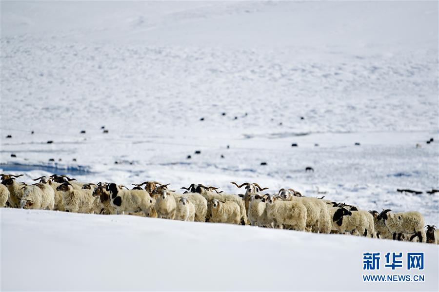 这是10月29日在青海省玉树藏族自治州称多县境内的嘉塘草原上拍摄的羊群。 近日,位于青海省玉树藏族自治州称多县的嘉塘草原迎来降雪,雪后的嘉塘草原银装素裹,景色壮美。 新华社记者 张龙 摄