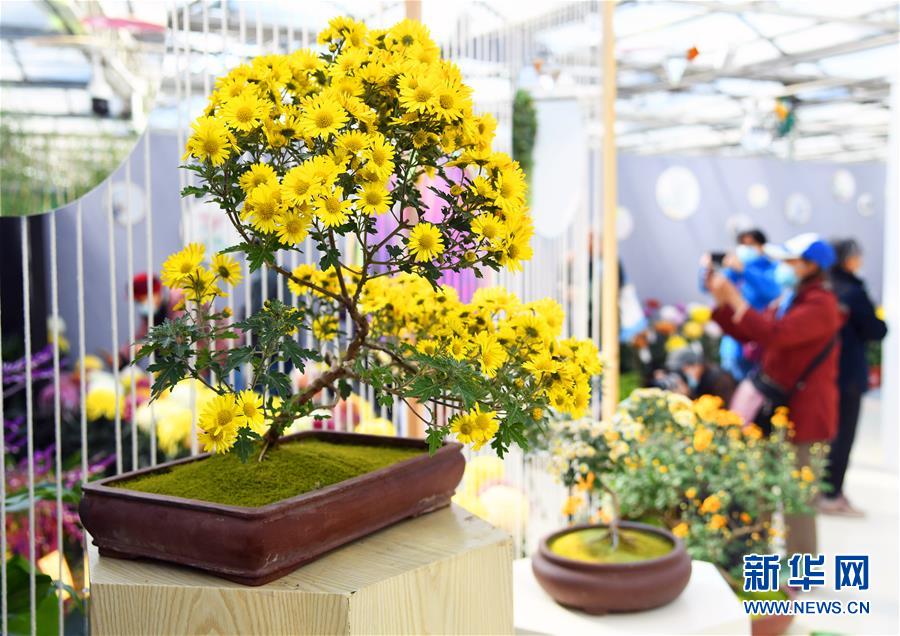 这是11月3日在北京世界花卉大观园菊花展现场拍摄的菊花。 近日,北京世界花卉大观园菊花展开幕,共展出来自2020北京世界花卉大观园第十一届菊花擂台赛的1500余盆菊花。 新华社记者 任超 摄