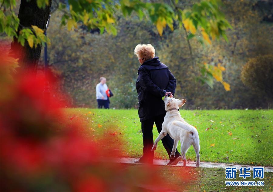 11月3日,人们在白俄罗斯首都明斯克的一处公园散步。 新华社发(任科夫摄)