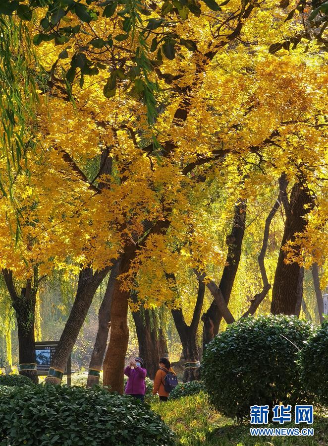 11月4日,游客在圆明园拍摄秋景。 深秋时节, 北京圆明园遗址公园内五彩斑斓,秋色宜人。 新华社记者 罗晓光 摄