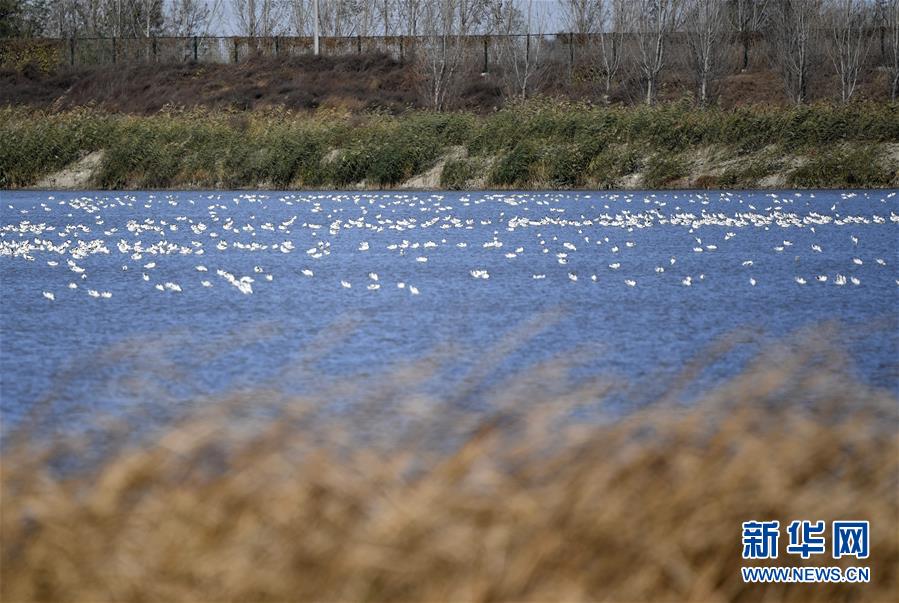 候鸟在七里海湿地的水面上(11月3日摄)。新华社记者 李然 摄