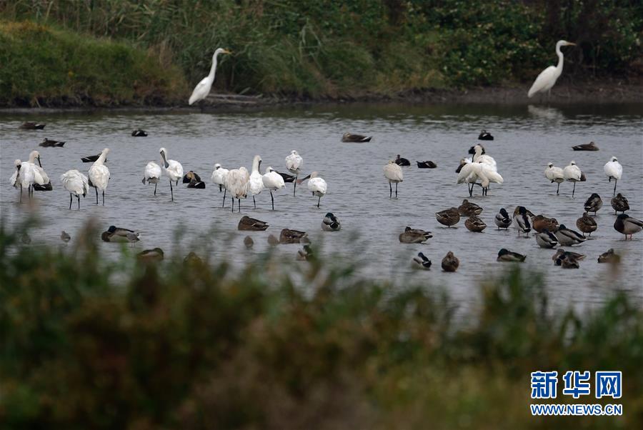 这是11月8日拍摄的在闽江河口国家湿地公园栖息越冬的鸟类。 闽江河口国家湿地公园位于福建省福州市长乐东北部闽江入海口,以河口浅滩为主,为闽江流域多年沉积形成的大片潮间沙滩和泥滩。这里是候鸟迁徙重要越冬地、水鸟集中分布区和众多珍稀濒危鸟种的栖息地,公园内动植物种类繁多,每年有数以万计的候鸟来此栖息越冬。 新华社记者 魏培全 摄