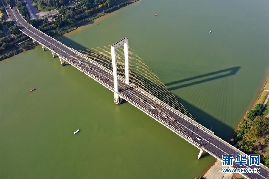 这是11月10日拍摄的南宁市邕江上的白沙大桥(无人机照片)。 初冬时节,广西南宁市邕江碧波荡漾,江上桥梁纵横,两岸高楼林立,风景宜人。 新华社记者 陆波岸 摄