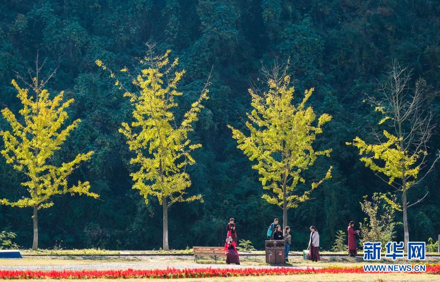 11月12日,游客在“十里古银杏长廊”观赏美景。新华社记者 徐昱 摄