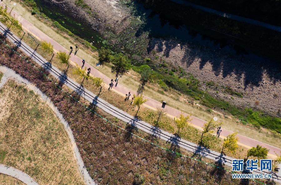 11月12日拍摄的“十里古银杏长廊”风景(无人机照片)。新华社记者 徐昱 摄