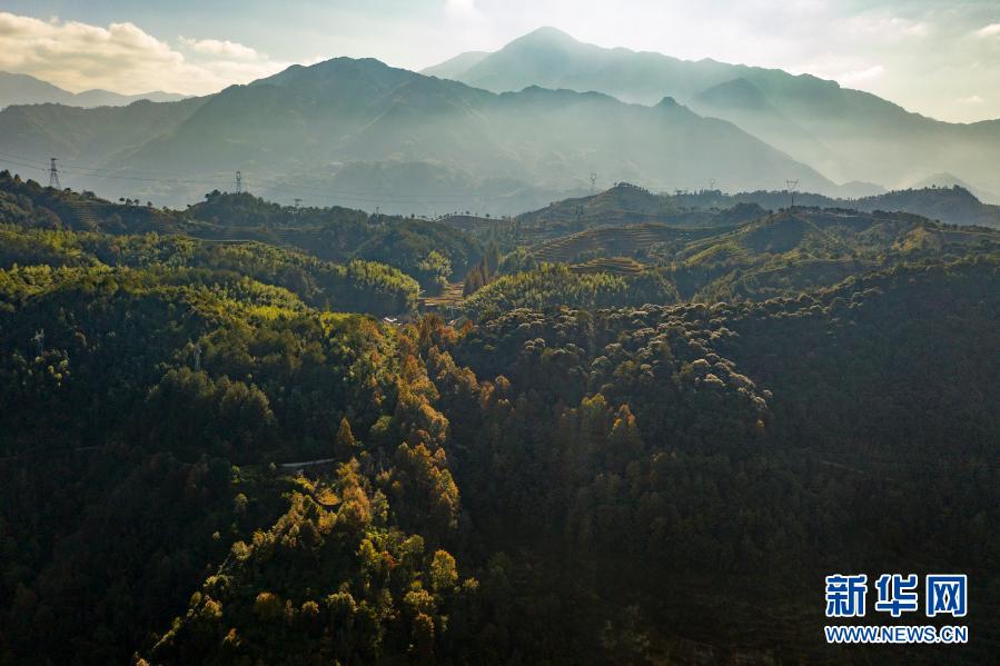 11月12日拍摄的景宁畲族自治县小溪附近山林景色(无人机照片)。