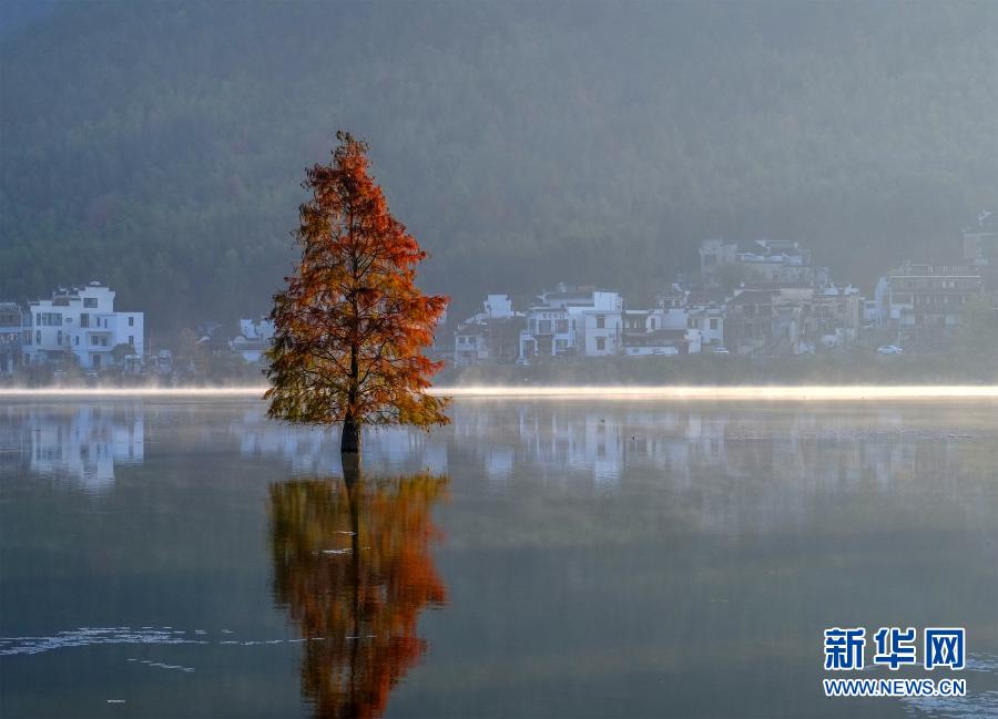 11月14日,安徽省黄山市黟县奇墅湖晨雾缥缈,美如仙境。
