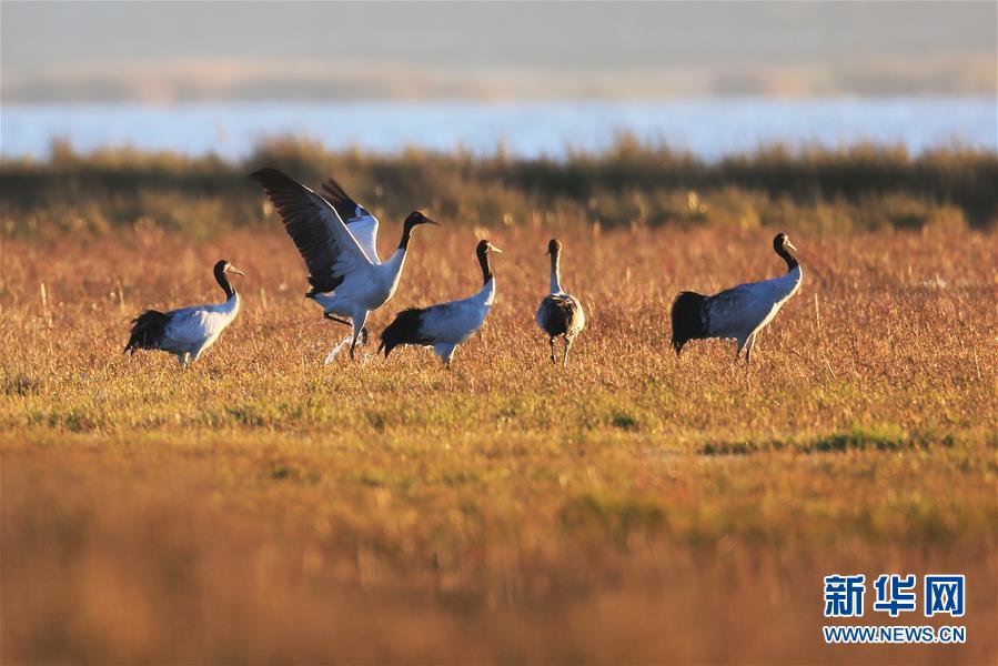 11月16日在贵州草海国家级自然保护区拍摄的黑颈鹤。 连日来,位于贵州省毕节市威宁彝族回族苗族自治县的草海国家级自然保护区陆续迎来黑颈鹤等越冬候鸟。 新华社发(王纯亮 摄)