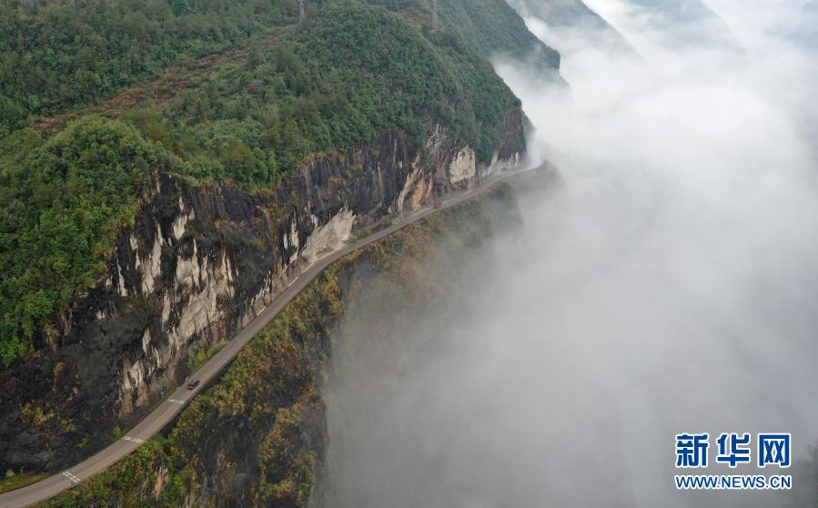 11月18日,车辆行驶在湖北省鹤峰县的雕崖公路上。