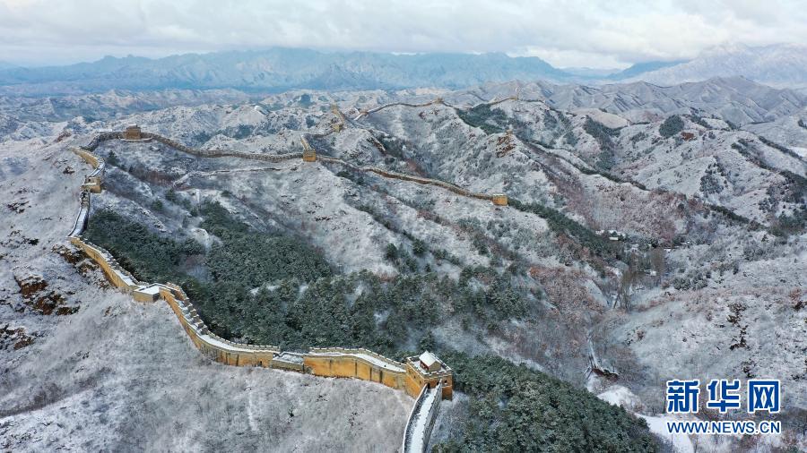 这是11月19日拍摄的金山岭长城雪景(无人机照片)。新华社发(周万平 摄)