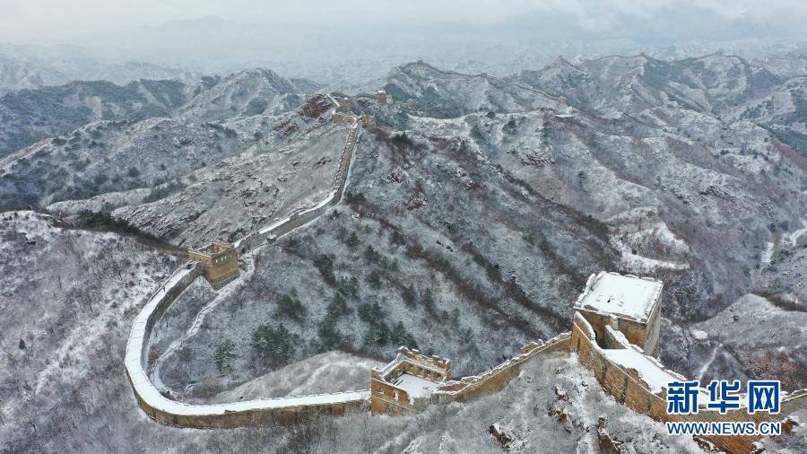 这是11月19日拍摄的金山岭长城雪景(无人机照片)。新华社发(周万平 摄)