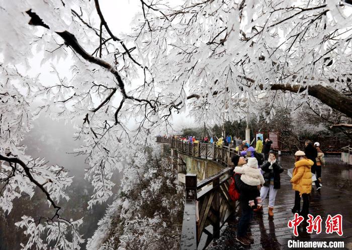张家界天门山银装素裹引客来。 吴勇兵 摄