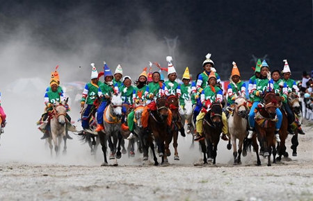 一年一度的“当吉仁”赛马节8月8日在平均海拔4300米的当雄县开幕,来自当雄草原的牧民,骑着自家的马匹参加比赛,策马扬鞭,一决高下。