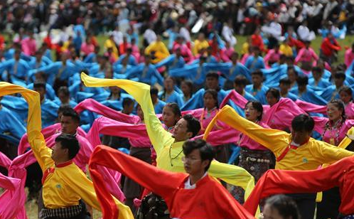 8月12日,2020中国碌曲锅庄舞展演暨甘南藏族自治州第六届少数民族传统体育运动会在甘肃省甘南州碌曲县夏泽滩草原上举行。