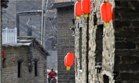 茶旧沟村位于太行山脚下,村内房屋依山而建,建筑材料以石头为主,错落有序,层层叠叠。