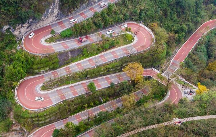 矮寨盘山公路位于湖南省湘西土家族苗族自治州吉首市矮寨镇。经过靓化提升的矮寨盘山公路。