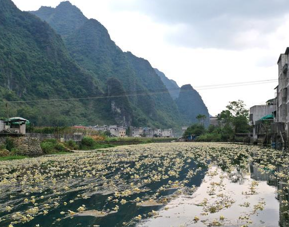 时下,广西都安瑶族自治县澄江河上开满了海菜花,形成一道独特的生态景观。海菜花对生存环境的水质要求高,被视为“水质风向标”。