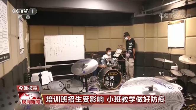 除了游学项目有变化。今年暑假,不少兴趣班都搬到了网上。而在一些低风险地区,一些培训机构恢复了线下的教学。在广东清远市区的一家乐器培训机构,记者看到有三俩同学正在练琴、学习架子鼓。机构负责人说因为疫情,今年暑期的招生受到一定影响。