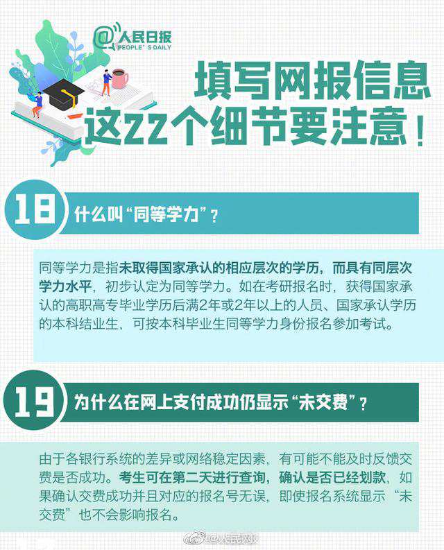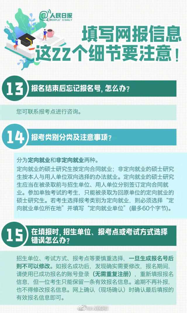 10月10日至31日,每天9:00-22:00,考生可登录全国硕士研究生招生考试网上报名平台进行正式报名(尽量避开网报开始阶段的高峰期)。预报名成功后,报名数据有效,不需要在正式报名阶段再次报名。