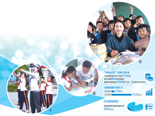 农村义务教育阶段学校教师特设岗位计划(简称“特岗计划”)始于2006年,每年公开招考选聘数万名高校毕业生到中西部贫困县农村学校任教。