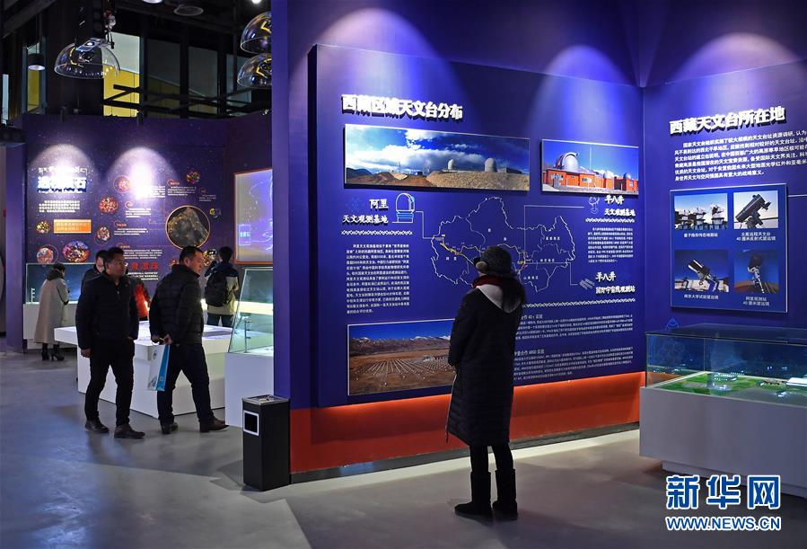 12月14日,观众参观藏域星球天文科普体验馆。 当日,藏域星球天文科普体验馆在西藏拉萨开馆试运营,这是西藏第一家天文科普体验馆。据介绍,此馆以感知宇宙、认知宇宙、探索宇宙为主题,以参观者的第一感官体验为设计导向,利用互动投影、悬浮投影、物体跟踪、人体捕捉、体感互动、VR等高科技手段展示藏地的神秘,揭示宇宙的奥秘。 新华社记者 李鑫 摄