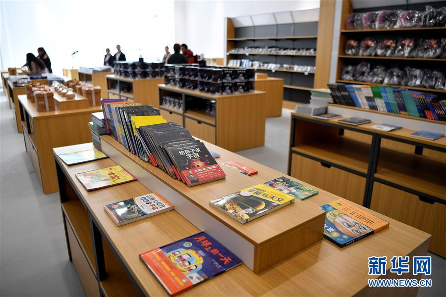 这是藏域星球天文科普体验馆内的天文知识周边产品商店(12月14日摄)。 12月14日,藏域星球天文科普体验馆在西藏拉萨开馆试运营,这是西藏第一家天文科普体验馆。据介绍,此馆以感知宇宙、认知宇宙、探索宇宙为主题,以参观者的第一感官体验为设计导向,利用互动投影、悬浮投影、物体跟踪、人体捕捉、体感互动、VR等高科技手段展示藏地的神秘,揭示宇宙的奥秘。 新华社记者 李鑫 摄