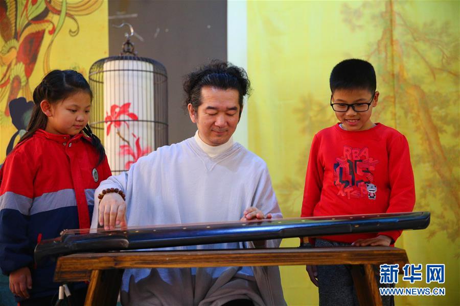 12月14日,古琴演奏家李佳(左二)指导鞍山师范学院学生弹奏古琴。 当日,鞍山师范学院举办“松风起”古琴文化艺术展,将古法斫琴的重要工序进行集中展示,并邀请辽宁鞍山籍古琴演奏家李佳进行现场演奏。许多观众在悠扬的琴声中参观,体验传统文化的独特魅力。 新华社记者 龙雷 摄