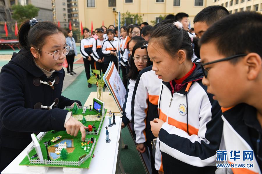 12月13日,合肥市第三十八中学学生向同学介绍自己的作品。新华社记者 张端 摄