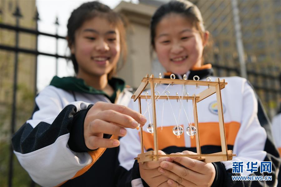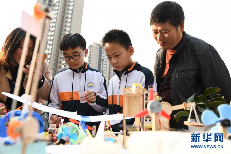 12月13日,合肥市第三十八中学学生(右二)展示自己的作品。新华社记者 张端 摄