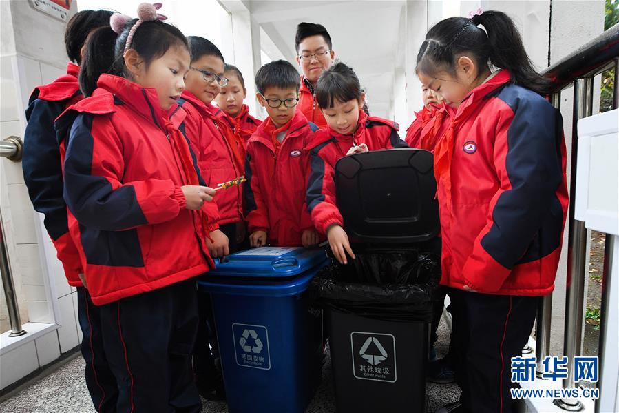 12月19日,小学生志愿者在开展垃圾分类志愿活动。新华社记者 徐昱 摄