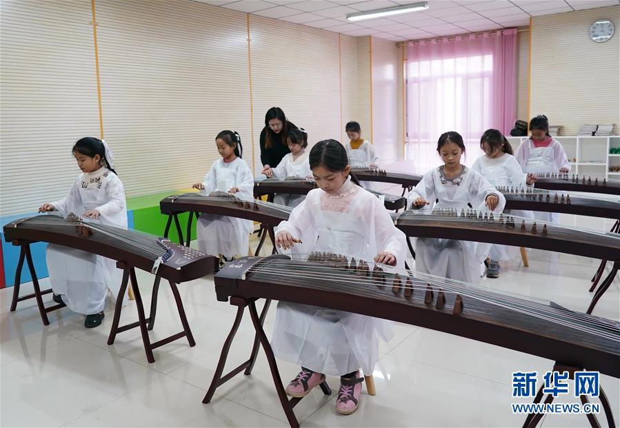 12月20日,唐山海港经济开发区第四小学音乐社团的孩子们在老师的指导下练习古筝。 今年以来,河北唐山海港经济开发区在主城区各小学推行“校内课后服务”制度,破解孩子放学早、无人接、无人看护的难题,通过丰富多彩的活动让孩子们度过快乐的课后时光。 新华社记者 杨世尧 摄