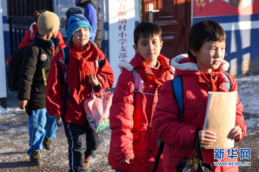 在新疆伊犁哈萨克自治州察布查尔锡伯自治县海努克乡阿热吾斯塘村小学,学生放学走出校园(12月18日摄)。 新华社记者 丁磊 摄