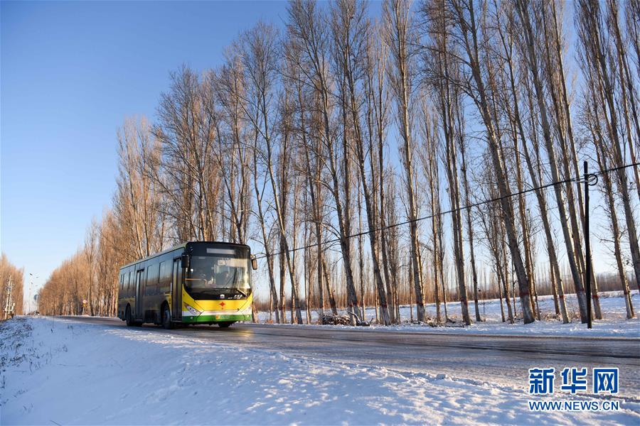 新疆伊犁哈萨克自治州察布查尔锡伯自治县海努克乡阿热吾斯塘村小学学生乘坐的“校车专线”行驶在海努克乡的乡间小道上(12月18日摄)。 新华社记者 丁磊 摄