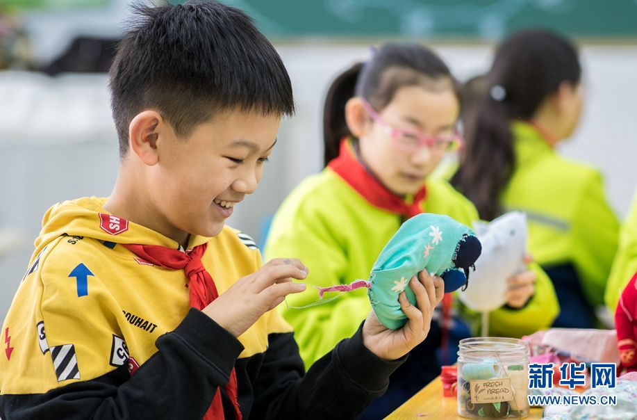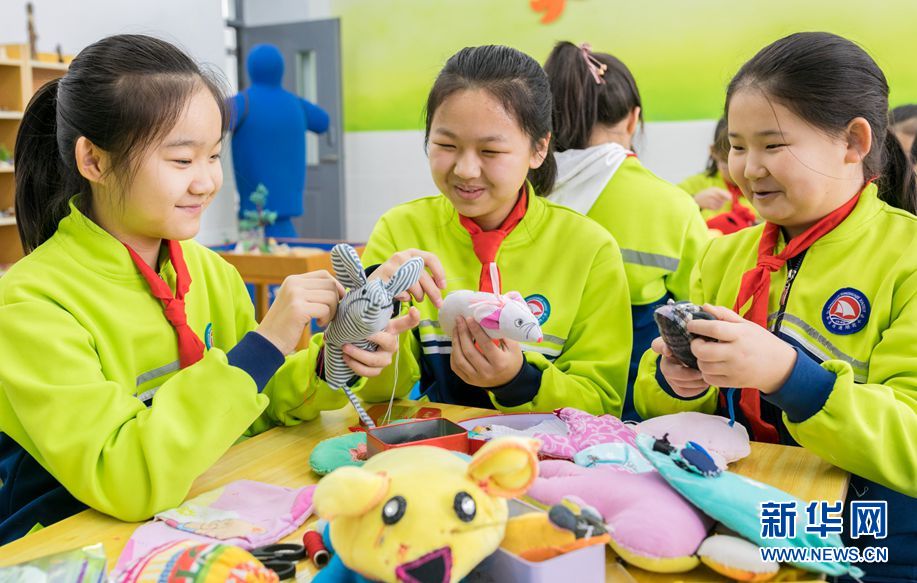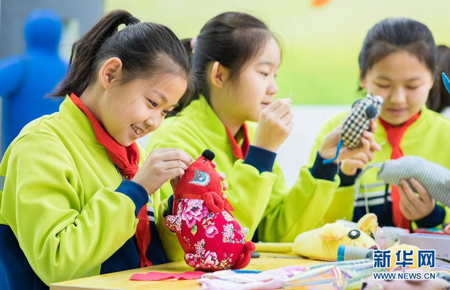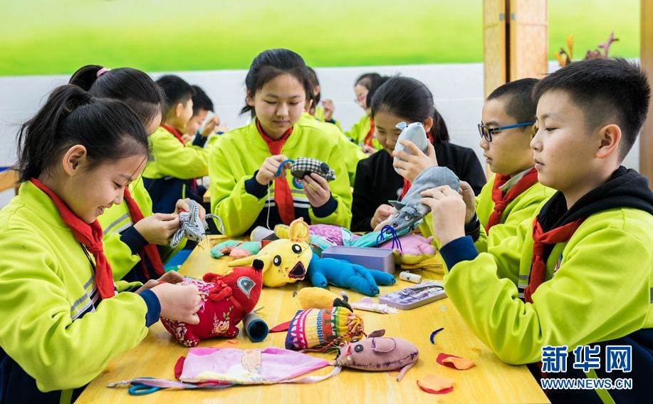 当日,内蒙古呼和浩特市玉泉区通顺街小学“巧手社团”的学生在老师的指导下,利用身边的布头、丝绵等废弃物,制作生肖鼠布艺作品,表达对新年的美好祝愿。近年来,玉泉区教育部门大力推动“传统文化进校园”活动,在当地学校里开设剪纸、面塑、戏曲等民间艺术课程,让学生感受传统文化的魅力。 新华网 发(丁根厚 摄)