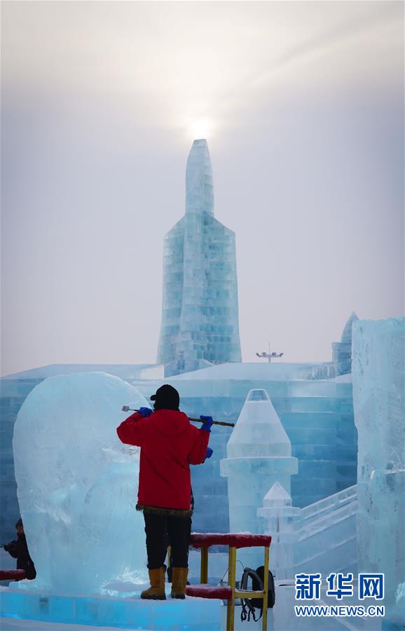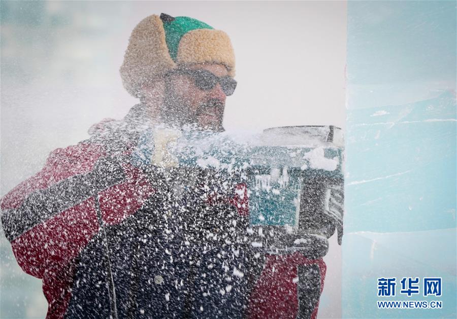1月6日,参赛者在创作冰雕。 当日,第三十四届中国哈尔滨国际冰雕比赛在哈尔滨冰雪大世界园区开赛,来自9个国家的31支代表队的冰雕高手将为游客献上一场冰雕艺术盛宴。 新华社记者 王松 摄