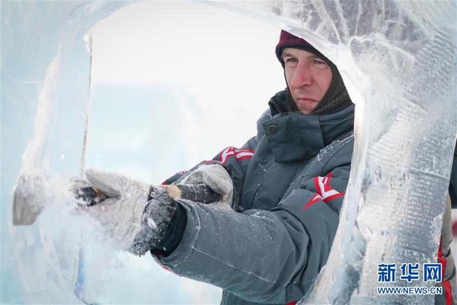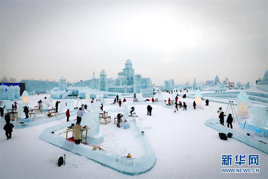 1月6日,参赛者在创作冰雕。 当日,第三十四届中国哈尔滨国际冰雕比赛在哈尔滨冰雪大世界园区开赛,来自9个国家的31支代表队的冰雕高手将为游客献上一场冰雕艺术盛宴。 新华社记者 王松 摄