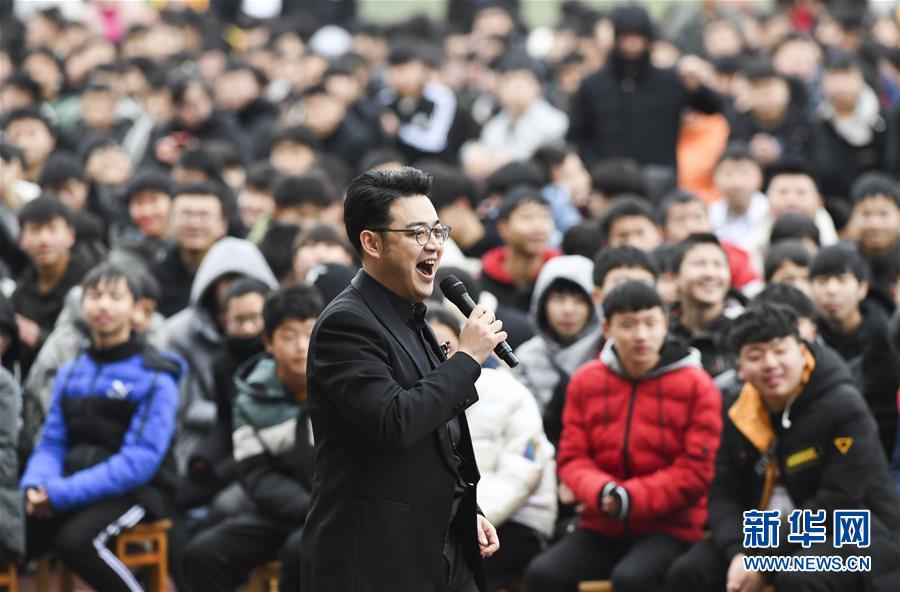 1月15日,中央歌剧院男中音歌唱家金川在慰问演出中演唱。 当日,“我们的中国梦”——文化进万家中央歌剧院文艺小分队来到重庆市石柱土家族自治县第一职业学校进行慰问演出,为学校的三千多名师生带来了一场精彩的音乐大餐。 新华社记者 王全超 摄