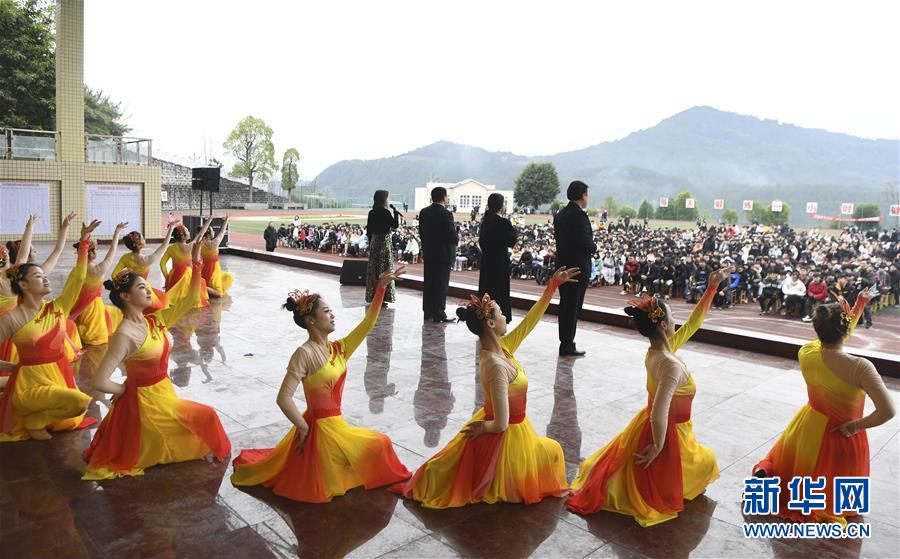1月15日,中央歌剧院的歌唱家们在慰问演出中演唱。 当日,“我们的中国梦”——文化进万家中央歌剧院文艺小分队来到重庆市石柱土家族自治县第一职业学校进行慰问演出,为学校的三千多名师生带来了一场精彩的音乐大餐。 新华社记者 王全超 摄