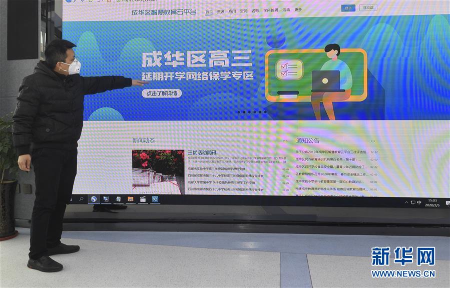 2月5日,成都市成华区教育局工作人员在介绍智慧教育云平台。 近日,成都市教育部门开展远程教育教学活动和学业辅导工作,以降低疫情对新学期教学工作的影响。 新华社记者刘坤摄