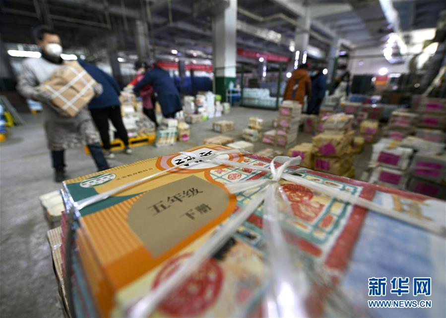 2月12日,邮政工作人员在分拣教材。 为助力新冠肺炎疫情防控,避免家长和学生到学校集中领取教材,中国邮政集团公司银川市分公司主动与当地各中小学校开展合作,在银川市启动“教材配送到户”服务,帮助中小学生在宁夏“空中课堂”线上开课前及时收到纸质教材。 新华社记者 冯开华 摄
