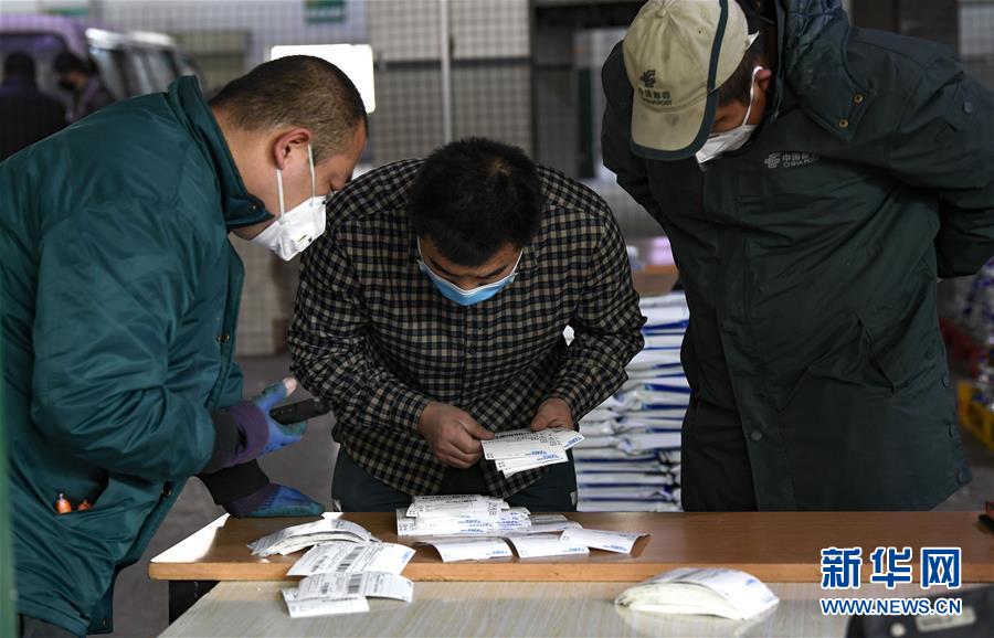 2月12日,邮政工作人员在查看、分类教材配送单。 为助力新冠肺炎疫情防控,避免家长和学生到学校集中领取教材,中国邮政集团公司银川市分公司主动与当地各中小学校开展合作,在银川市启动“教材配送到户”服务,帮助中小学生在宁夏“空中课堂”线上开课前及时收到纸质教材。 新华社记者 冯开华 摄