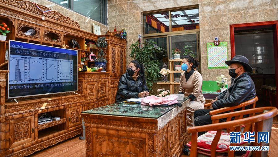 家住拉萨市城关区纳金街道办事处纳金村岗堆小区的拉萨市北京中学高二13班的格央(左)和同一个大院的同学一起收看“空中课堂”的节目(2月13日摄)。 新华社记者 晋美多吉 摄